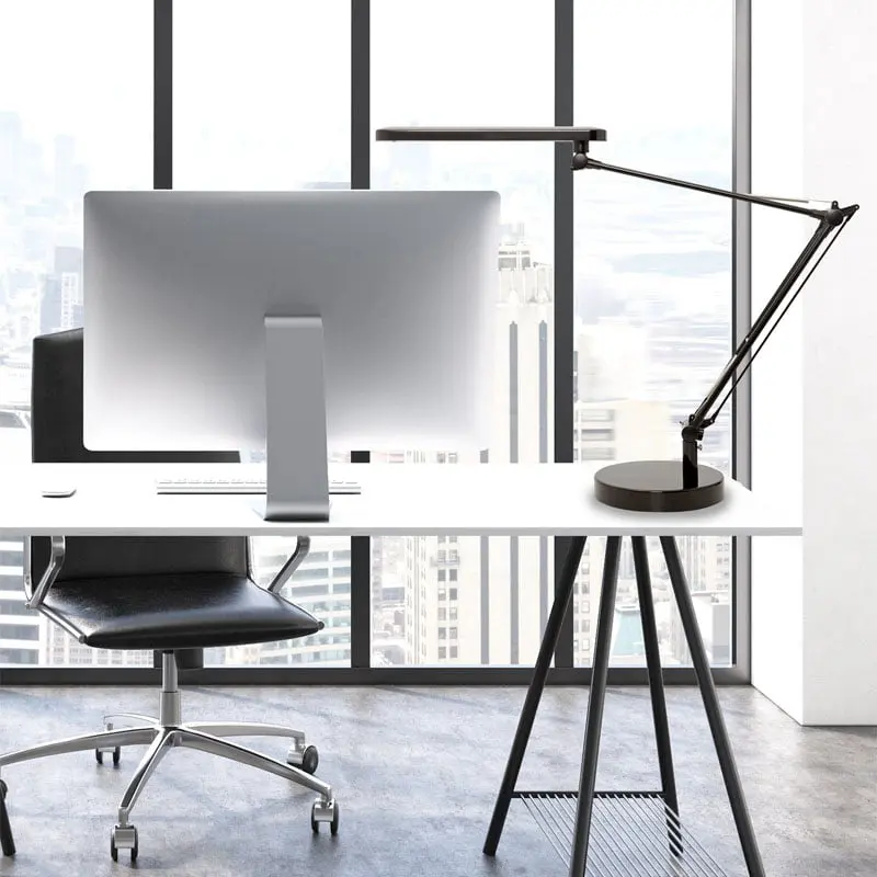 Eleganta galda lampa ar jaunāko LED diožu tehnoloģiju, kas nodrošina ļoti zemu enerģijas patēriņu. Gaismas krāsas temperatūra ir 3050 Kelvini. Nodrošina asimetriski izgaismotu darba laukumu, laba un silta gaismas izkliede. Ērti pielāgojama nepieciešamā lampas darba pozīcija. Dubultā šarnīra kāts ir aprīkots ar kompensācijas atsperēm, kas ērti ļauj plaši variēt lampu nepieciešamajā pozīcijā. Lampas galvu var pielāgot gan horizontāli, gan vertikāli. Slēdzis atrodas uz lampas galvas. Izturīga, 2.5cm bieza metāla pamatne, kas nodrošina izcilu stabilitāti. Lampu iespējams lietot arī pieskrūvējot pie galda virsmas.