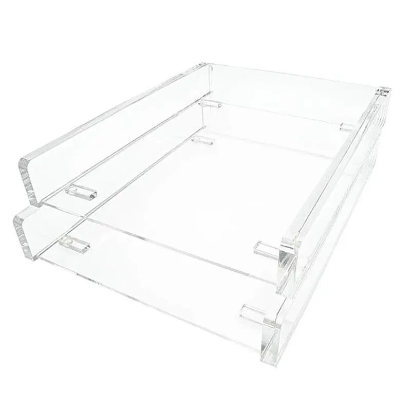 Caurspīdīgs ar glancētu virsmu. Iespējams savietot vairākus dokumentu plauktus vienu virs otra.