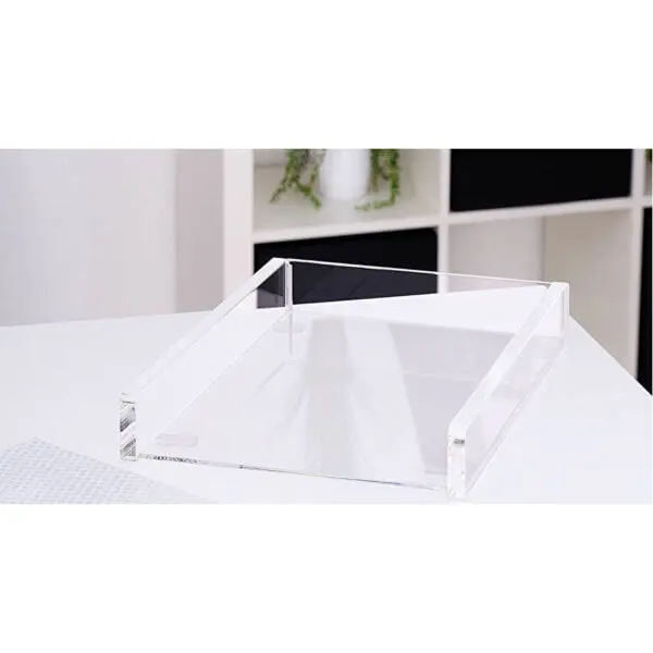 Augstas kvalitātes dokumentu plaukts, kas izgatavots no kristāldzidra akrila. Caurspīdīgs ar glancētu virsmu. Iespējams savietot vairākus dokumentu plauktus vienu virs otra. Piemērots A4 formāta dokumentiem. Plaukta apakšā caurspīdīgas gumijas kājiņas pret slīdēšanu. Izmērs: 31.0×24.2×4.8cm.