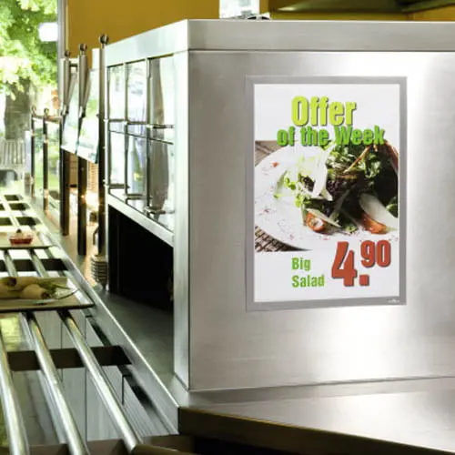 Pašlīmējošs informācijas rāmis ar magnētisku atlokāmo priekšējo lapu. Magnētiskais blīvējums stingri turas kopā ar apakšējo pamatni. Rāmī iespējams ievietot svarīgu informāciju, plakātus, norādes, kuras var mainīt pēc nepieciešamības. Inforāmis no abām pusēm izskatās identiski. To ērti var aizpildīt ar diviem plakātiem. Katra plakāta svars 150 g/m². Rāmi var pielīmēt uz gludas, cietas virsmas. To var viegli pārvietot (pārlīmēt) uz citu virsmu. Piemērots lietot gan vertikāli, gan horizontāli. Izmērs: 297x420mm. Formāts: A3. Iepakojumā 2 gabali.