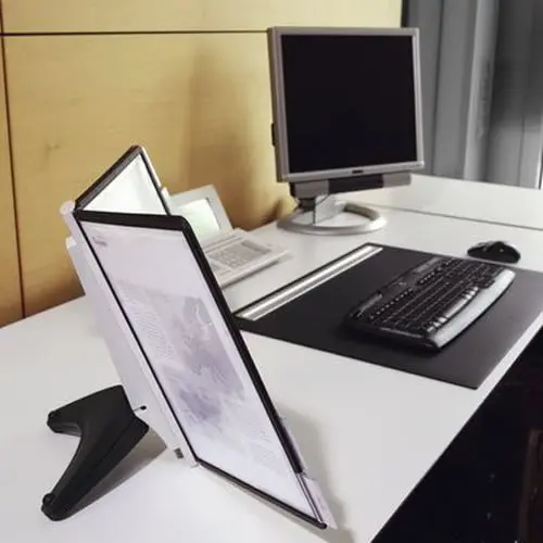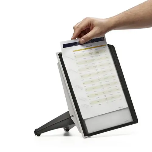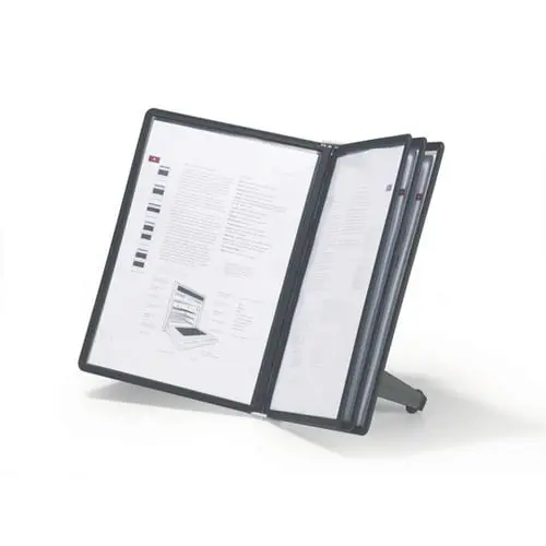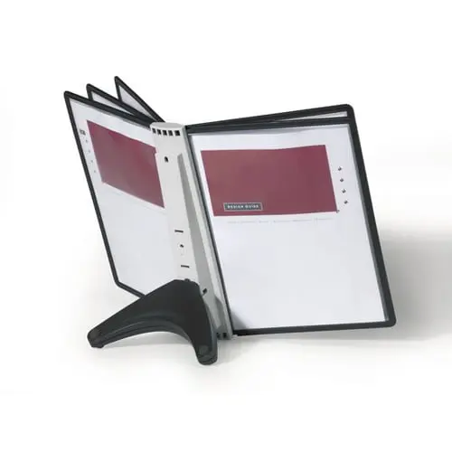 Informācijas stends, kas ērti novietojams uz galda un neaizņem daudz  vietas. Komplektā 5 melnas informācijas kabatas A4 formātā, kur katrā  kabatā iespējams ievietot līdz 10 papīra loksnēm 80g/m2. Stends ir piemērots cenu sarakstiem, informācijai par produktiem, telefonu numuru sarakstiem, utt.